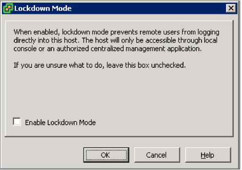 Bạn có thể kích hoạt chế độ Lockdown qua thẻ Configuration của máy chủ trong vCenter : Configuration>Security Profile> Lockdown Mode>Edit.